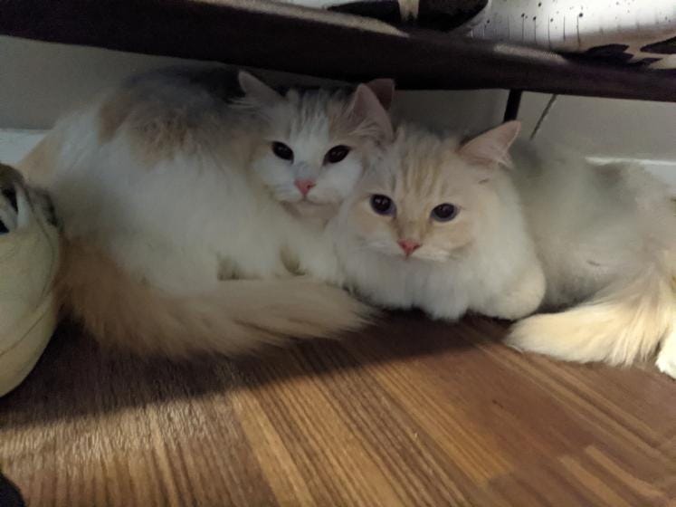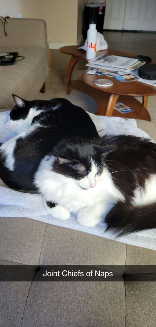 [5] In order: Harvey and Olivia (top left), Uriel (napping) and Larry and Rosie (my ex step-pets, which is a delightful palindrome).